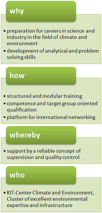GRACE is a graduate school for post-graduates of the KIT Climate and Environment Center. In cooperation with the Technical University of Darmstadt and the ESADE Business School, Barcelona, GRACE is aimed at supplying post-graduate students with specific and interdisciplinary knowledge as well as with key qualifications. In this way, Ph. D. students will be prepared optimally for their later career in science, industry, or an own enterprise. Apart from analysis and problem solution competence, international networking and dissemination of business-relevant contents are supported. Among others, stays abroad, summer schools, or a block course for executives at the ESADE Business School, Barcelona, are funded.